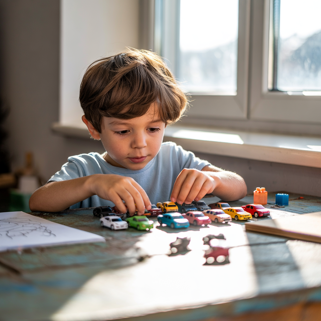 • トミカやプラレールを整列させる